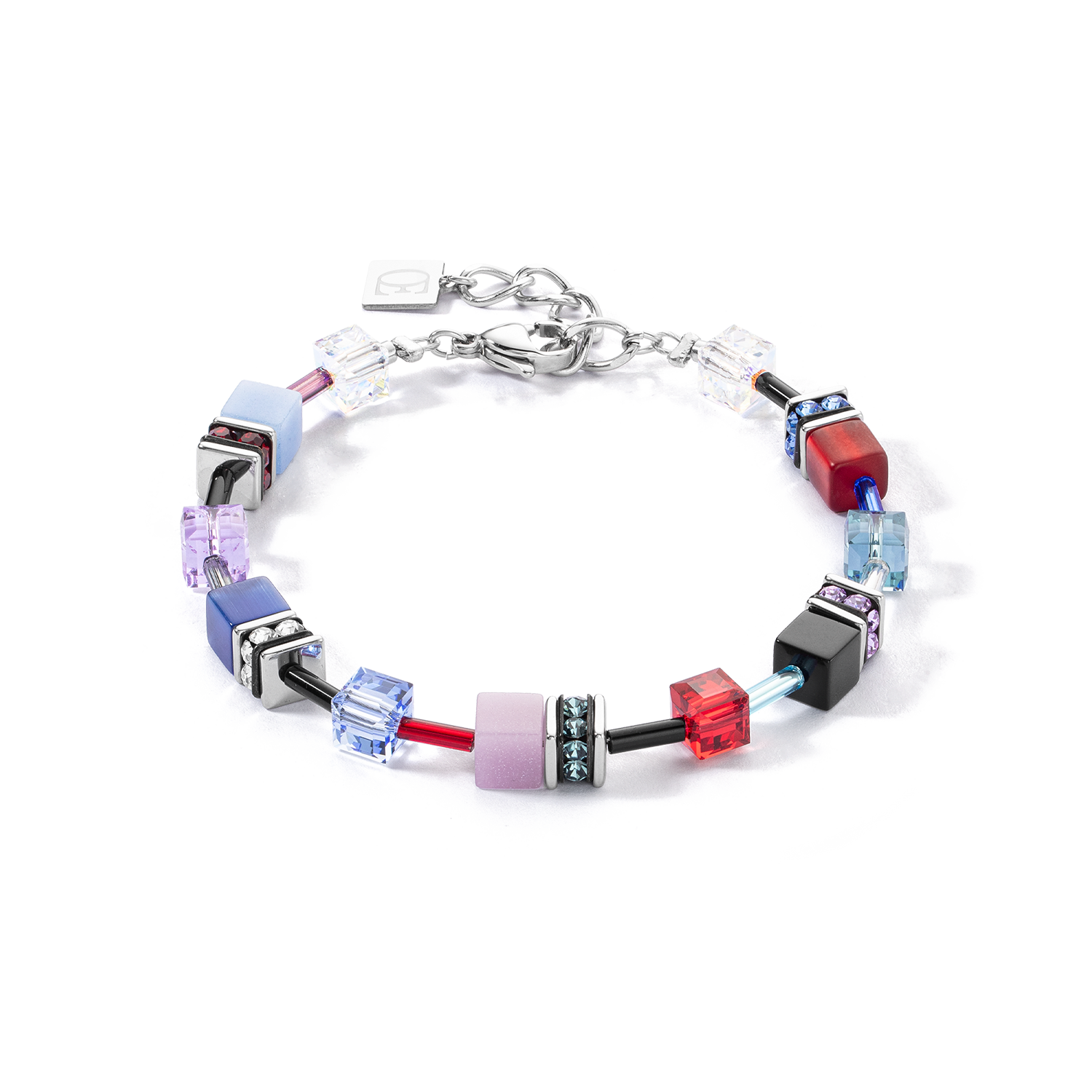 Bracelet GeoCUBE® Iconic Argent-Royal - L'élégance rencontre les couleurs de la saison Le bracelet GeoCUBE® Iconic Argent-Royal associe la puissante palette de couleurs du rouge et du bleu à un design intemporel et élégant. Avec ses accents argentés et les couleurs tendance de la saison, ce bracelet est une pièce maîtresse élégante qui ajoute une touche spéciale à votre tenue. Idéal pour le porter seul ou en combinaison avec le collier et les boucles d'oreilles assortis, c'est un must-have pour toutes celles qui veulent combiner les tendances de la mode avec l'élégance classique.