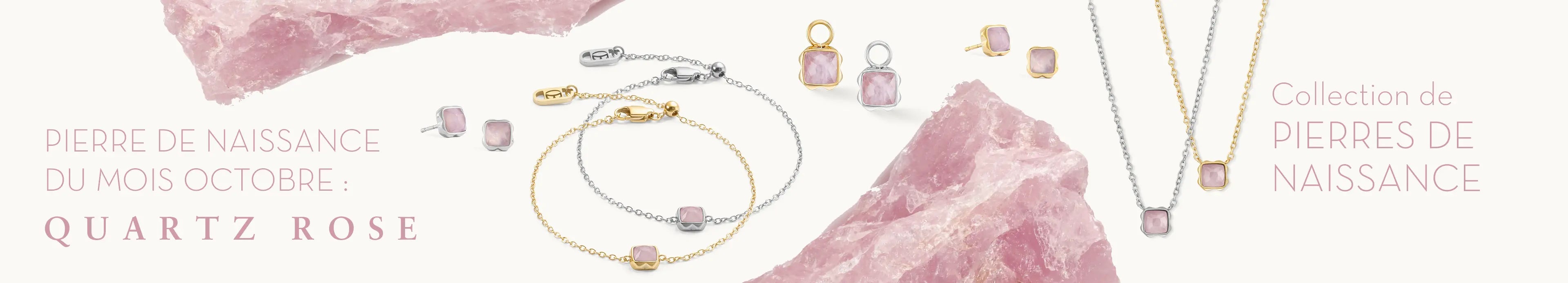 Birthstone Octobre Boucles d'oreille Quartz Rose Or