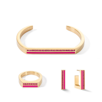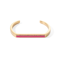 Ce bracelet jonc Cuff arbore un style moderne marqué par des lignes claires et des motifs géométriques. Lassociation dor éclatant et de rose vif lui confère un style unique et original. Que vous le portiez pour des occasions formelles ou au quotidien, ce bracelet jonc vous vaudra certainement des regards admiratifs. Disponible en 2 tailles.Tous les bijoux que vous commandez auprès de CŒUR DE LION, sont livrés dans un étui design, accompagnés d’un certificat d’authenticité.